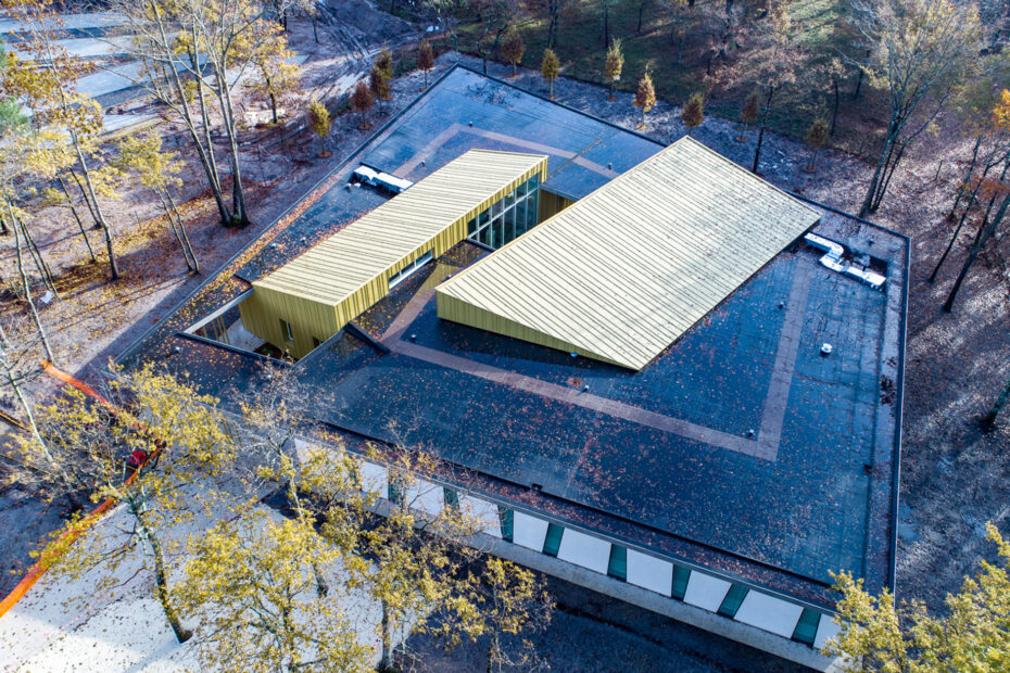 Nous avons mis en œuvre du zinc à joint debout, façonné sur mesure dans notre atelier, puis posé sur site dans le respect des règles de l’art. Les détails de finition, les angles et les chéneaux ont demandé des pliages techniques et un calepinage rigoureux. Nous avons assuré l’étanchéité complète de la toiture tout en garantissant une bonne ventilation et une isolation performante. La coordination avec les autres corps d’état a été essentielle, notamment pour l’intégration du bardage ventilé. Ce chantier illustre notre expertise en couverture et bardage zinc sur des ouvrages architecturaux exigeants, alliant esthétique et durabilité.
