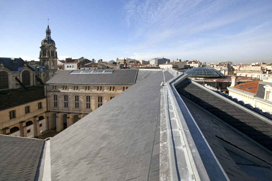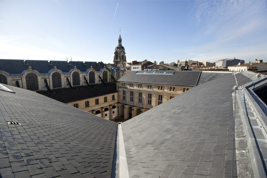 En 2012, notre entreprise a eu l’honneur de réaliser les travaux de réfection de la couverture en ardoises et des verrières de la Chambre Régionale des Comptes d’Aquitaine, située dans l’emblématique Cour Mably à Bordeaux.