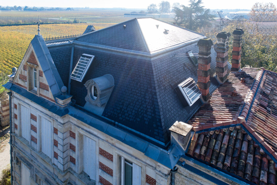 Ce projet, conçu par l’architecte Didier Lefort (DL2A), visait à moderniser les installations tout en respectant le caractère patrimonial du site. Notre mission a porté sur la réfection complète de la toiture du chai, avec une attention particulière portée à l’étanchéité, à l’intégration des nouveaux éléments architecturaux et à la durabilité des matériaux. Le chantier a mobilisé notre savoir-faire en couverture traditionnelle et contemporaine, alliant exigence technique et esthétique. Nous avons collaboré étroitement avec les autres corps d’état pour assurer une cohérence parfaite avec l’ensemble du projet architectural. Cette réalisation s’inscrit dans notre engagement à préserver le patrimoine tout en accompagnant des projets ambitieux d’évolution et de valorisation des domaines viticoles. Le résultat reflète l’excellence d’un chantier mené dans les règles de l’art.