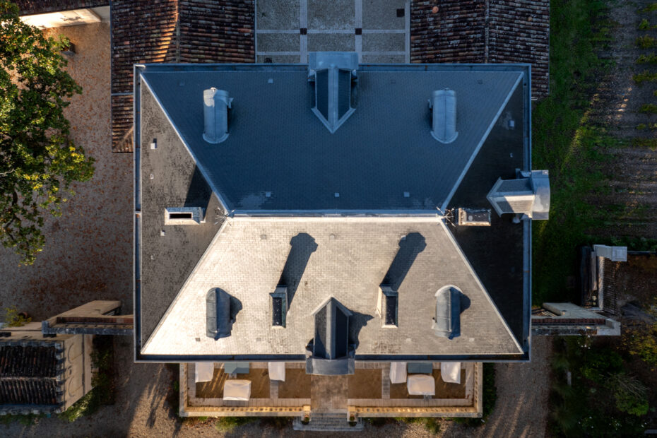 Le Château Kirwan, domaine viticole emblématique du Médoc, a fait l’objet de plusieurs chantiers d’envergure auxquels notre entreprise a eu le privilège de participer. Nous sommes intervenus sur la réfection complète des toitures, mêlant tradition et technicité à travers trois savoir-faire complémentaires : la couverture en ardoises naturelles, la couverture en zinc à joint debout et la couverture en tuiles canal.